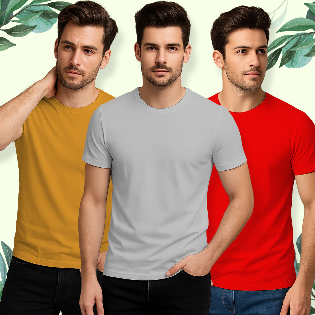 Plain Round Neck Half Sleeves Combo Pack of 3 _ Red, Yellow, Grey